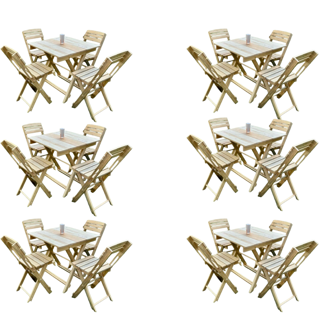 Juego de 5 Mesas Plegables con 20 Sillas Plegables – Mobiliario de Madera de Pino Natural – Ideal para Cafeterías, Cocinas y Terrazas – Diseño Compacto y Funcional